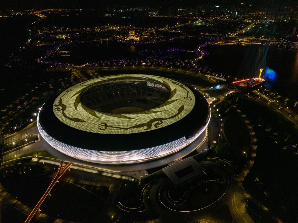这是4月19日拍摄的第31届世界大学生夏季运动会开幕式主体育场及主火炬。新华社记者沈伯韩摄