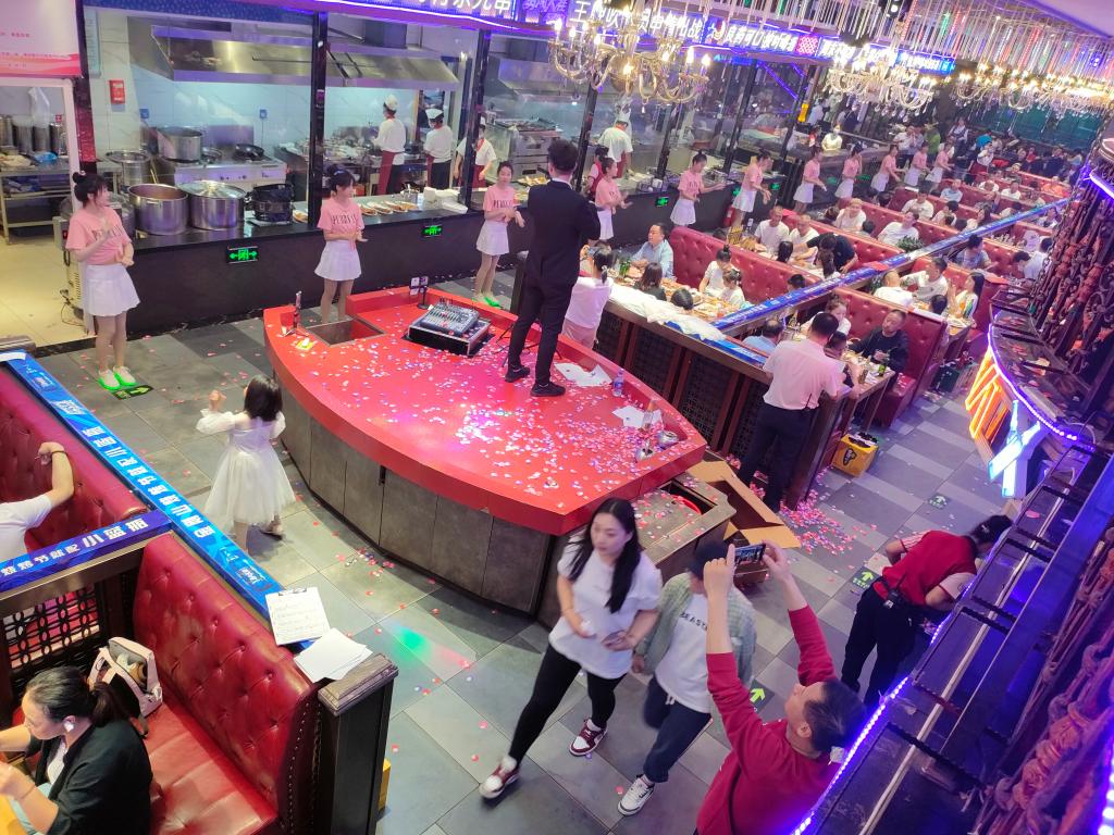 哈尔滨一家烧烤店内,一位小女孩加入了店家的舞蹈。新华社记者朱悦 摄