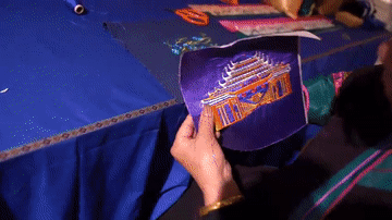 一件件侗绣作品图案精美、色彩斑斓