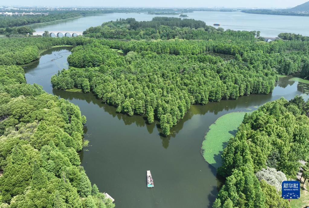 6月9日拍摄的常熟尚湖风景区景色(无人机照片)。