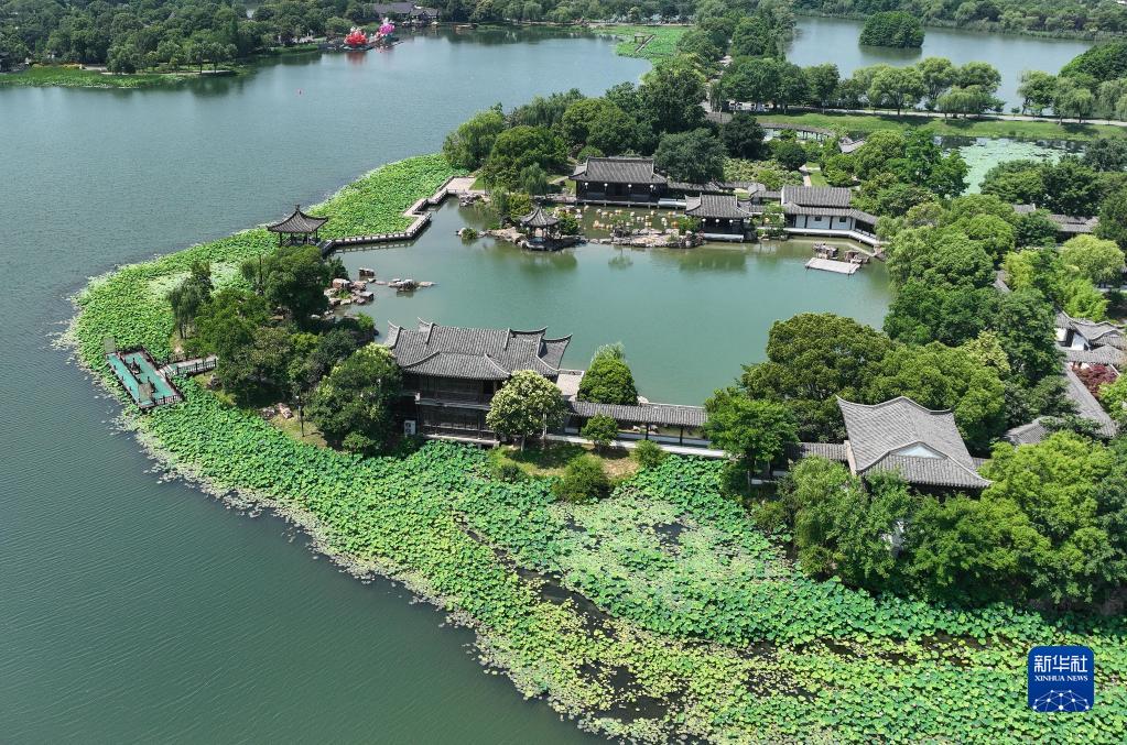 6月9日拍摄的常熟尚湖风景区景色(无人机照片)。
