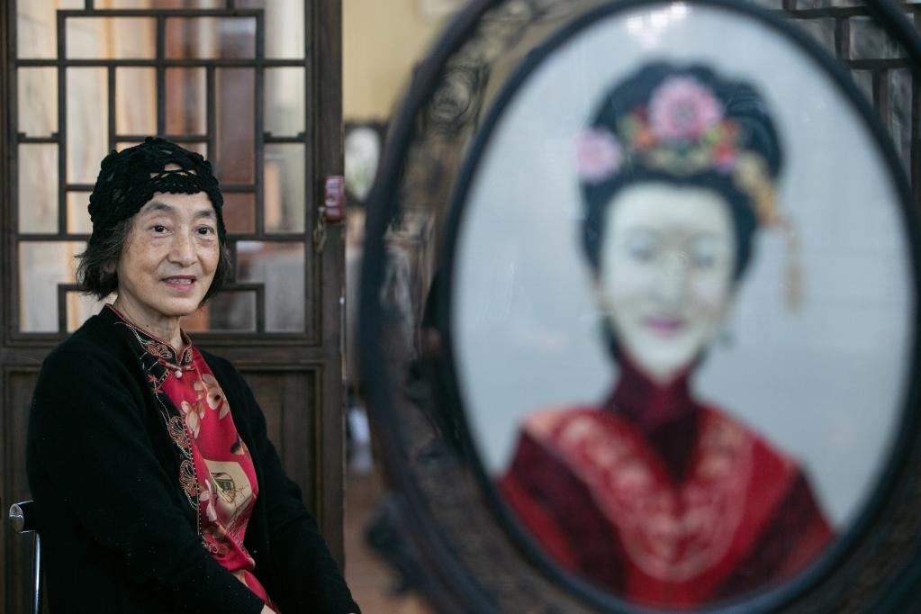 新华社重庆6月9日电 薄如蝉翼的绸纱上,细密的针线描绘出一位身着红衣汉服、佩戴精美发饰的仕女。拨动画框,绣面缓慢旋转至背面,红衣仕女“换”上一身绿色旗袍,轻纱覆肩……