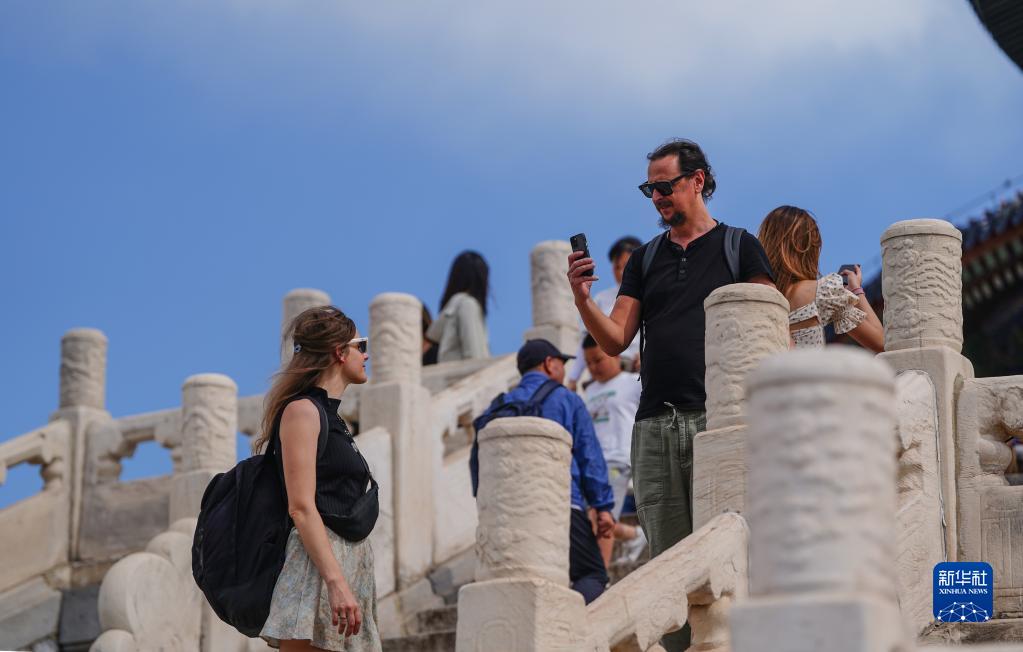 6月9日,游客在天坛祈年殿游览。