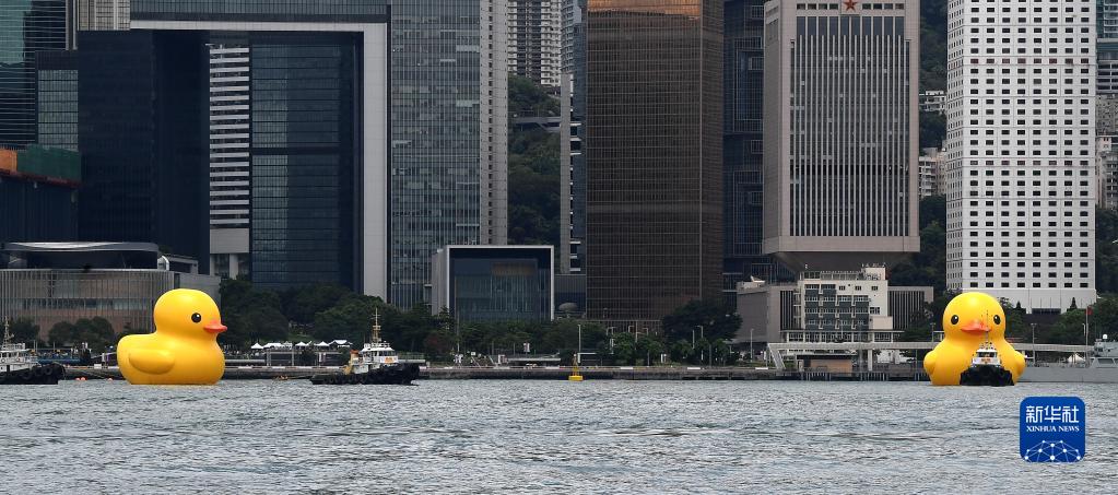 新华社香港6月9日电(记者 谢妞)9日,展览《橡皮鸭二重畅》在港启动,迎接两只“大黄鸭”到港。