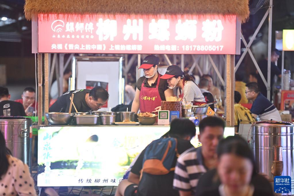 夏夜里,广西柳州市柳北区新开的广雅民生夜市烟火气升腾,炒田螺、螺蛳粉、烤肉串等特色美食吸引众多市民。