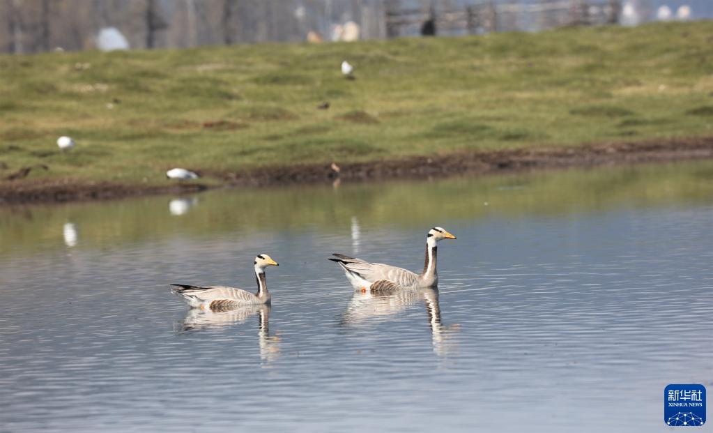 这是6月9日在蒙古国库苏古尔湖拍摄的斑头雁。