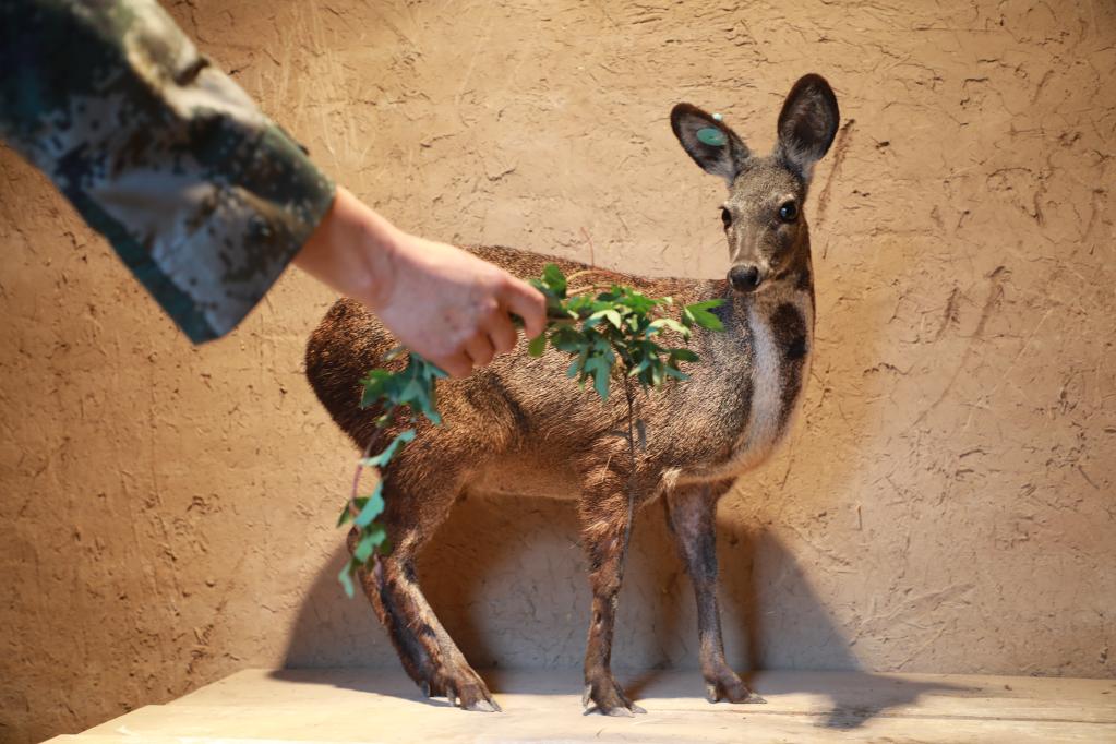 “林麝喜食叶子,这里植被茂盛,而且环境安静,非常适宜林麝生活。”王刚说,饲养员每顿要给林麝准备5种以上新鲜树叶,配以麸皮、黄豆、芝麻、白萝卜、胡萝卜、南瓜等组合饲料,“还要加一点营养补品,养得可金贵哩。”