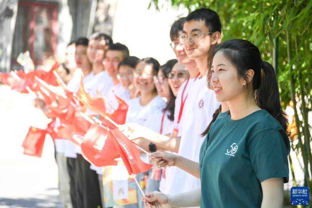 6月10日,大学生为火炬手加油。新华社记者 任超 摄