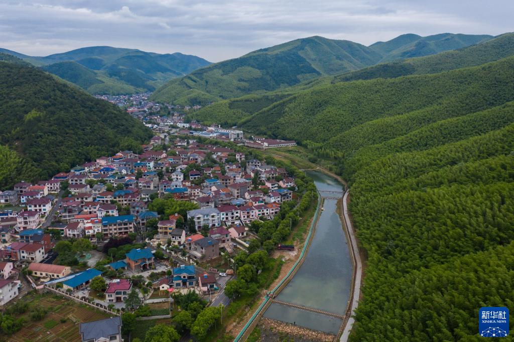空中俯瞰浙江湖州市长兴县煤山镇新川村(5月24日摄,无人机照片)。该村先后获评全国民主法治示范村、浙江省全面小康建设示范村、浙江省卫生村、浙江省美丽乡村特色精品村、浙江省AAA级景区村庄等。