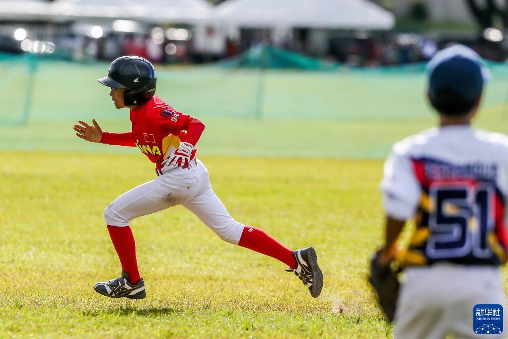 6月的马尼拉已进入雨季,但午后的阳光依然刺眼。蓝天白云下,身着红白配色棒球服、背着6号号牌的石一牛布在草坪上奋力奔跑,汗水从他稚嫩、黝黑的脸上甩下。