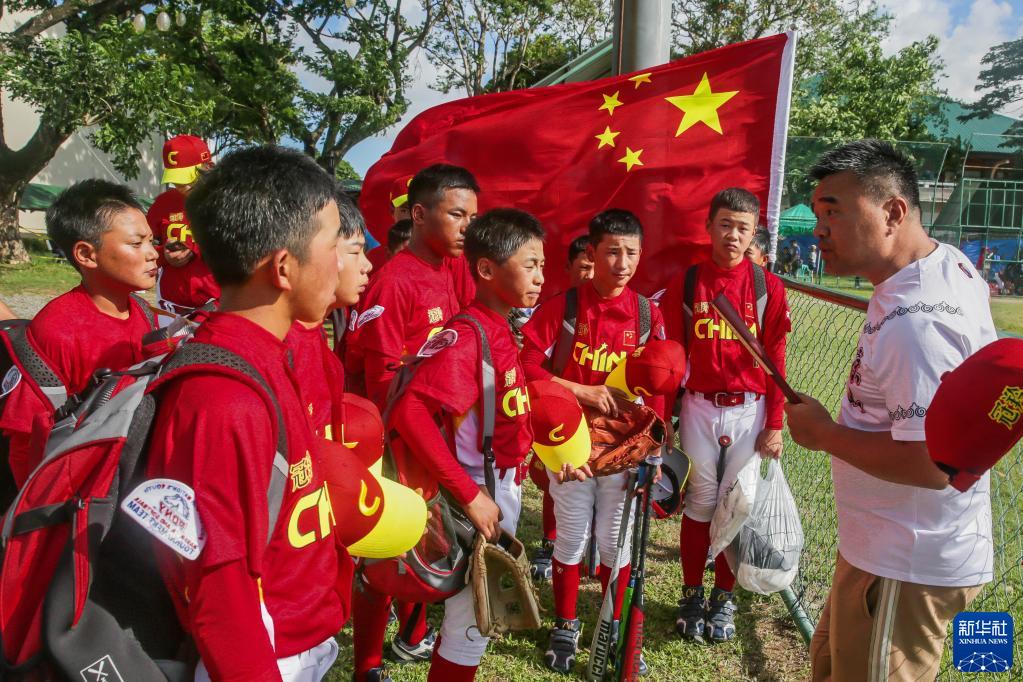 6月9日,凉山强棒队球员在“小马世界少棒垒联盟”亚洲区U12组别小组赛对阵菲律宾一队比赛前。新华社发(乌马利摄)