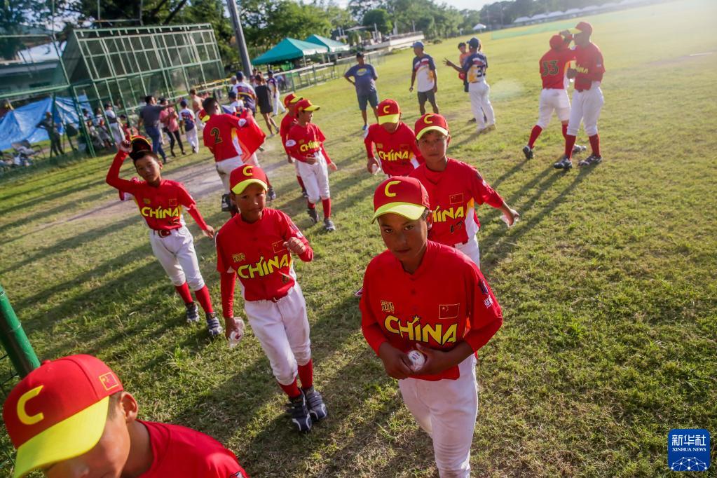 6月9日,凉山强棒队球员在“小马世界少棒垒联盟”亚洲区U12组别小组赛战胜菲律宾一队后离场。新华社发(乌马利摄)
