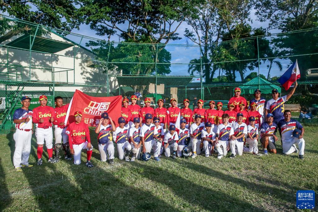 6月9日,凉山强棒队球员在“小马世界少棒垒联盟”亚洲区U12组别小组赛战胜菲律宾一队后与对方球员合影。新华社发(乌马利摄)