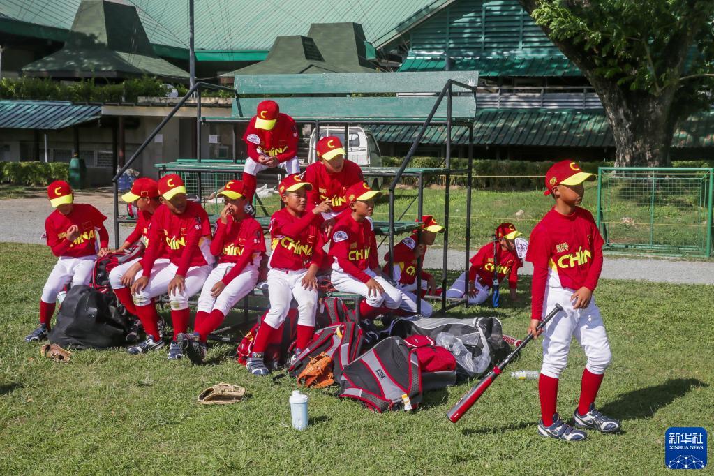 6月9日,凉山强棒队球员在“小马世界少棒垒联盟”亚洲区U12组别小组赛对阵菲律宾一队比赛前。新华社发(乌马利摄)