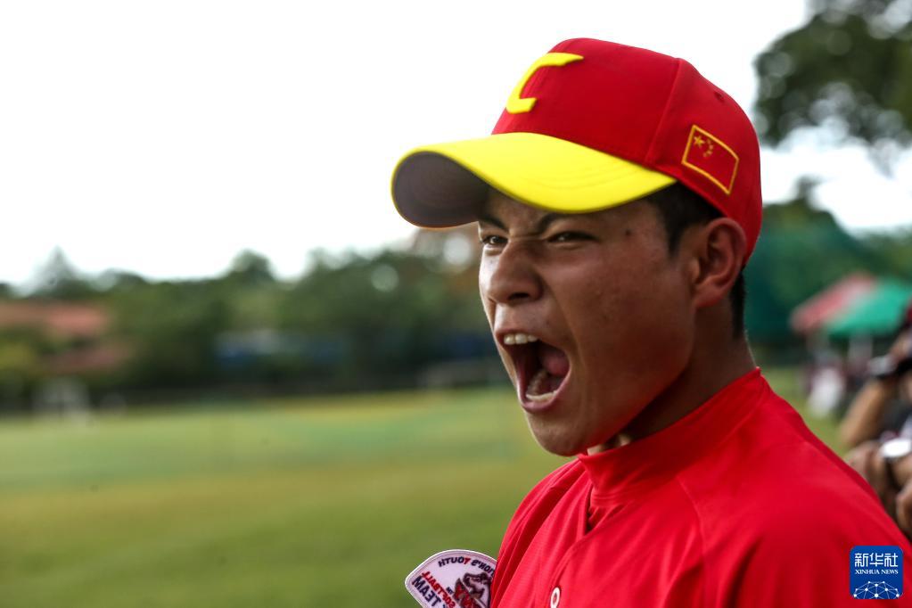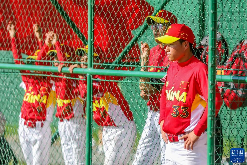 6月9日,凉山强棒队助理教练马虎在“小马世界少棒垒联盟”亚洲区U12组别小组赛对阵菲律宾一队比赛中观战。新华社发(乌马利摄)
