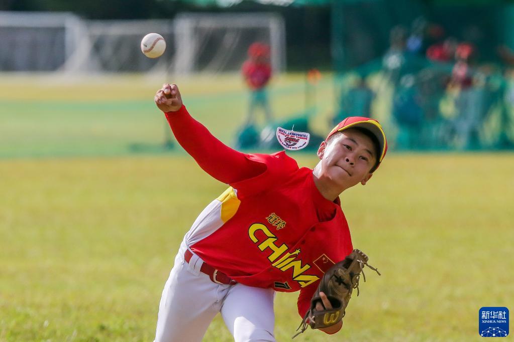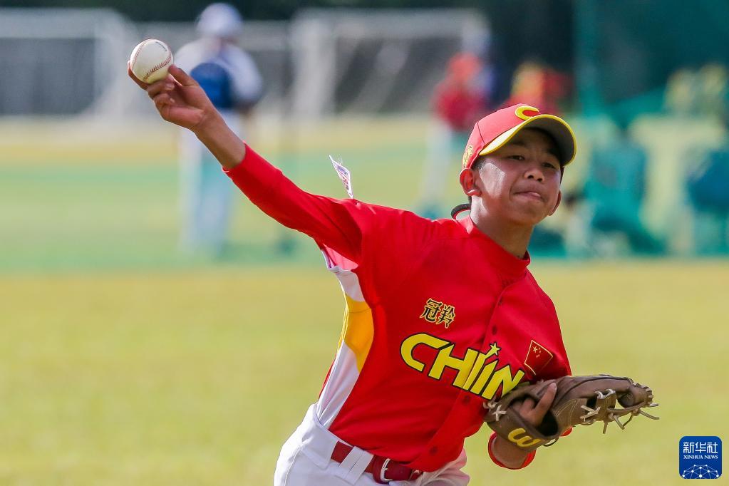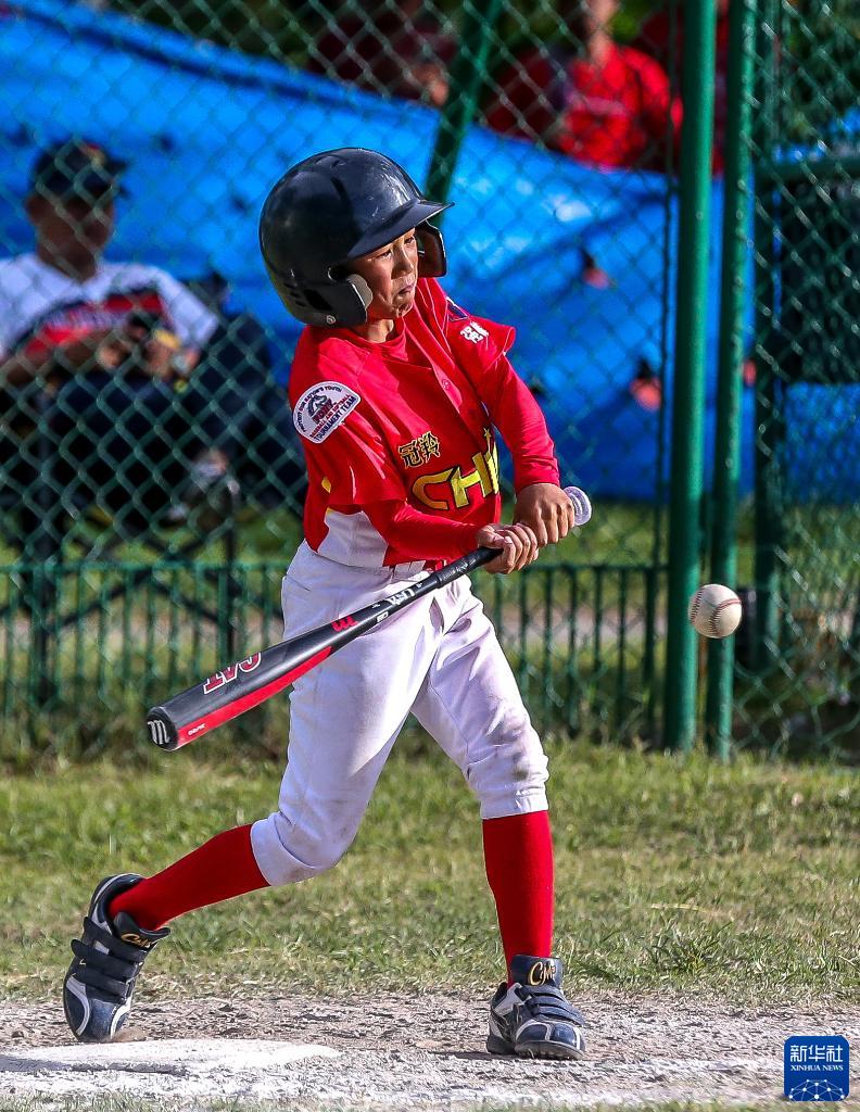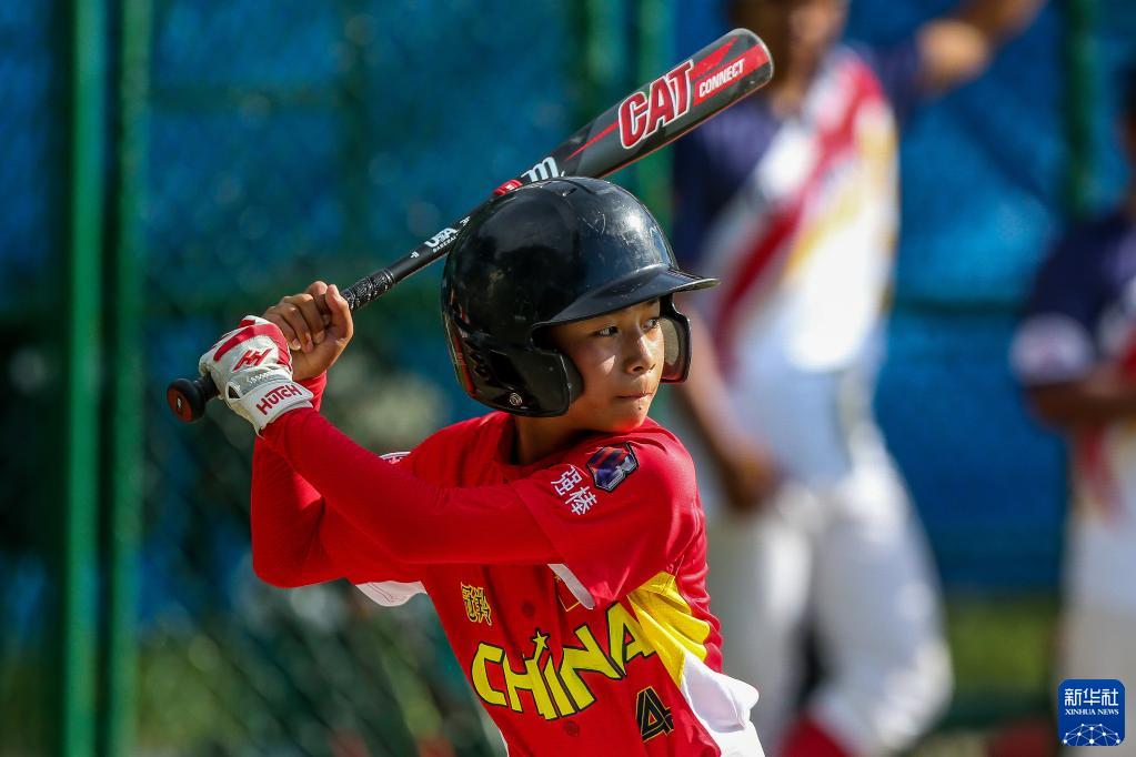 6月9日,凉山强棒队球员杨朔在“小马世界少棒垒联盟”亚洲区U12组别小组赛对阵菲律宾一队比赛中。新华社发(乌马利摄)
