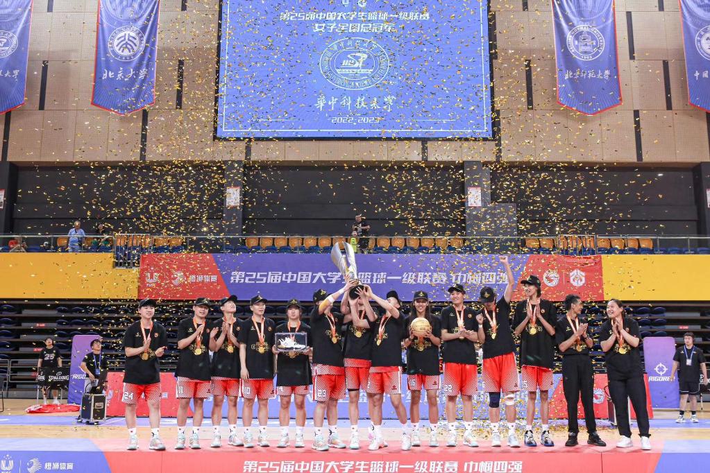 新华社南京6月11日电 第25届中国大学生篮球联赛女篮一级联赛全国总决赛11日在江苏省扬州市落幕。华中科技大学以66:58击败“九冠王”北京师范大学,夺得全国总冠军。
