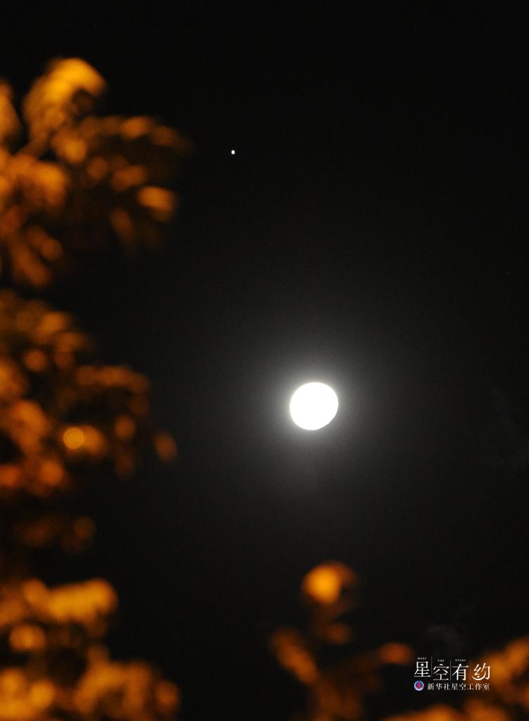 这是2012年11月2日清晨在江苏苏州拍摄的木星伴月。新华社发