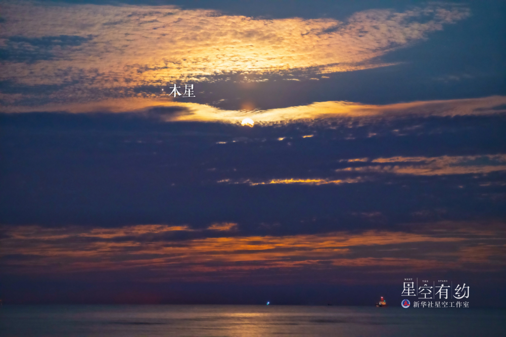 北京市天文摄影爱好者张国林2022年9月11日清晨在辽宁绥中佳兆业海滩拍摄的木星伴月。(本人供图)