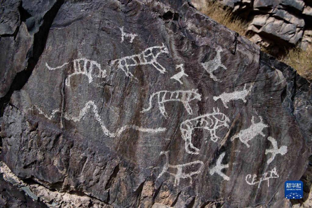 甘肃省嘉峪关市黑山岩画中的一幅兽群岩画(资料照片)。 新华社发(敦煌研究院供图)