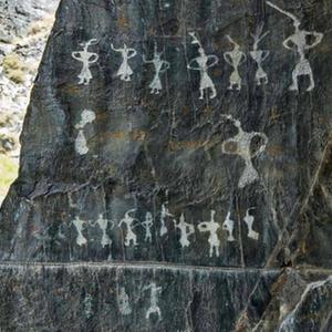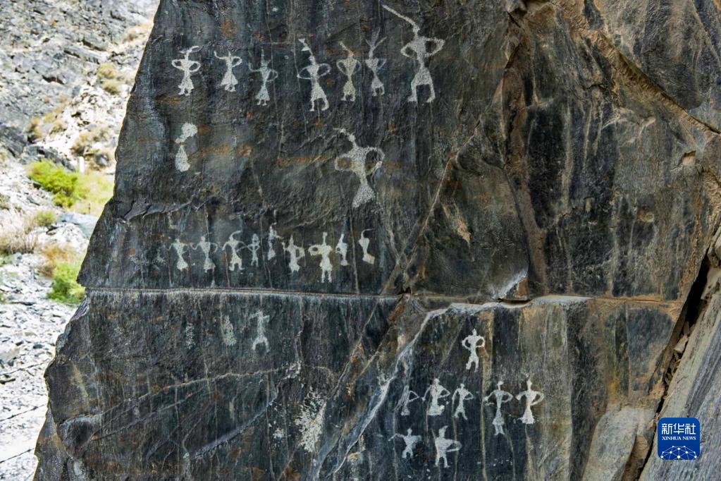 甘肃省嘉峪关市黑山岩画中的一幅众人舞蹈岩画(资料照片)。 新华社发(敦煌研究院供图)