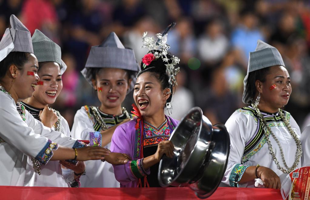 你看,那些身着民族盛装,手拿锄头翩翩起舞、画上美丽妆容走T台的姑娘小伙,是不是一点也不逊色于绿茵场上的球员?
