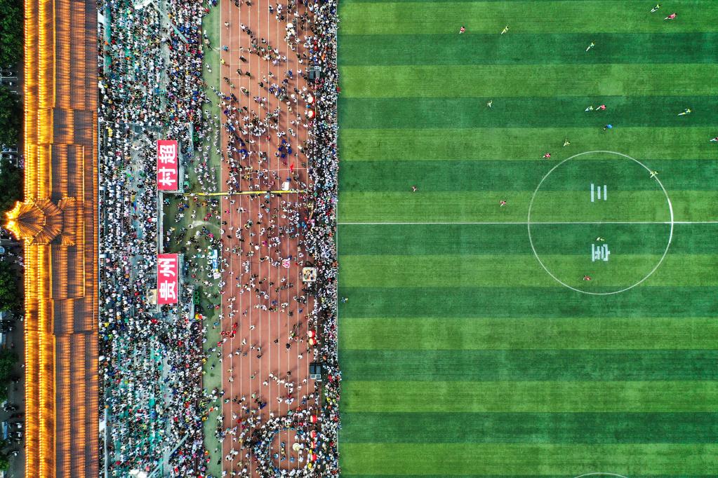 2023年6月10日拍摄的贵州“村超”足球比赛现场(无人机照片)。新华社记者 杨文斌 摄