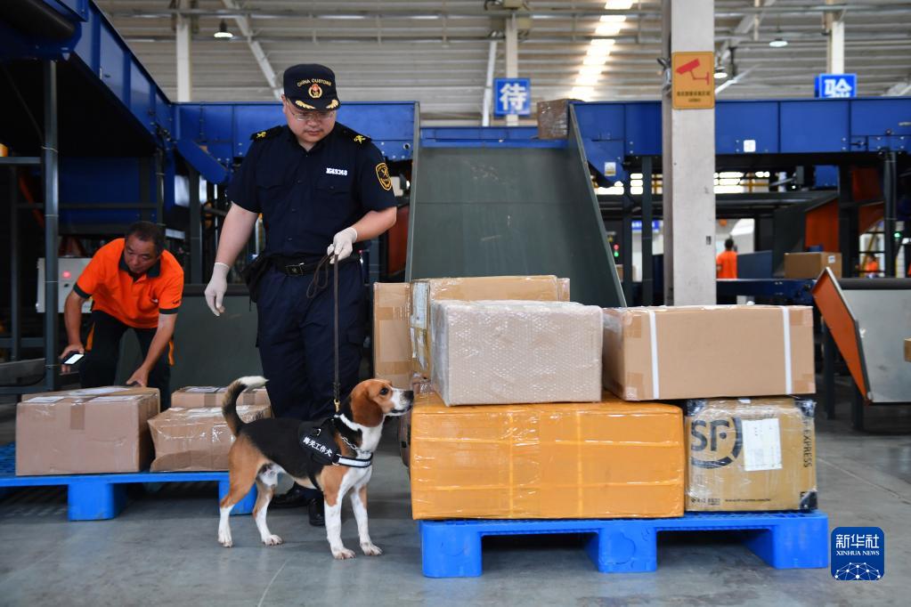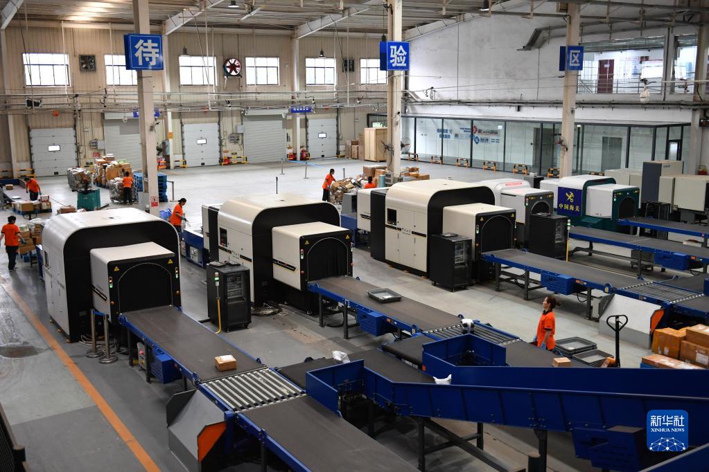 6月13日,工作人员在长沙邮局海关查验邮件。新华社记者 陈振海 摄