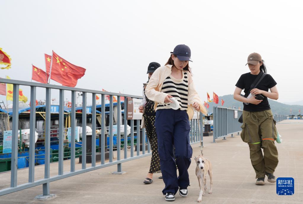 6月12日,几名出海观光的游客在强蛟镇码头上岸。
