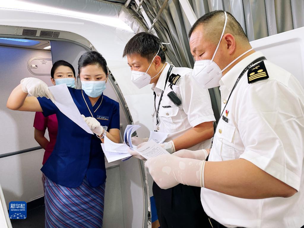 6月13日,乌鲁木齐地窝堡机场海关关员登临中国南方航空CZ6018次航班检查。新华社发