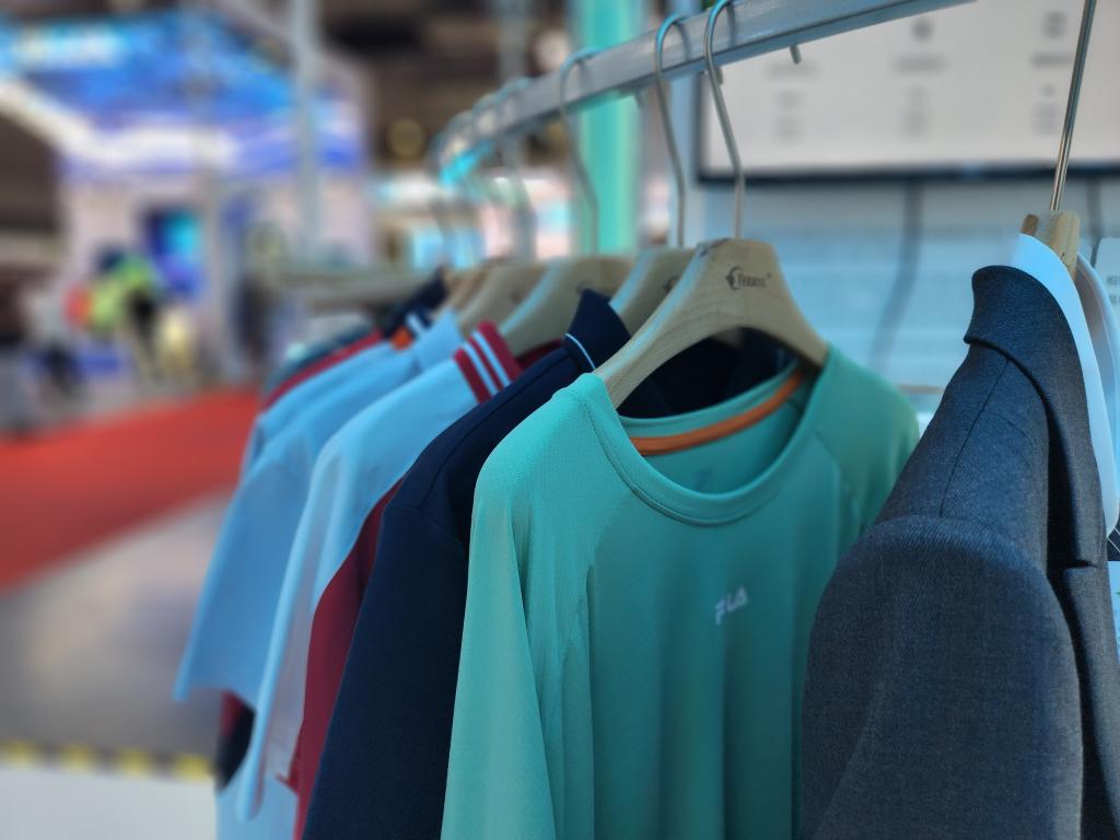 碳博会上凯赛生物展示的生物基聚酰胺纤维产品制成的服饰。新华社记者王默玲 摄