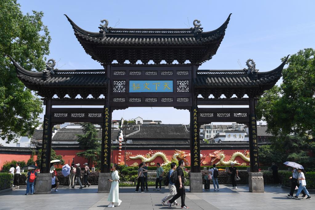 南京夫子庙景区内的天下文枢牌匾。新华社记者李博 摄