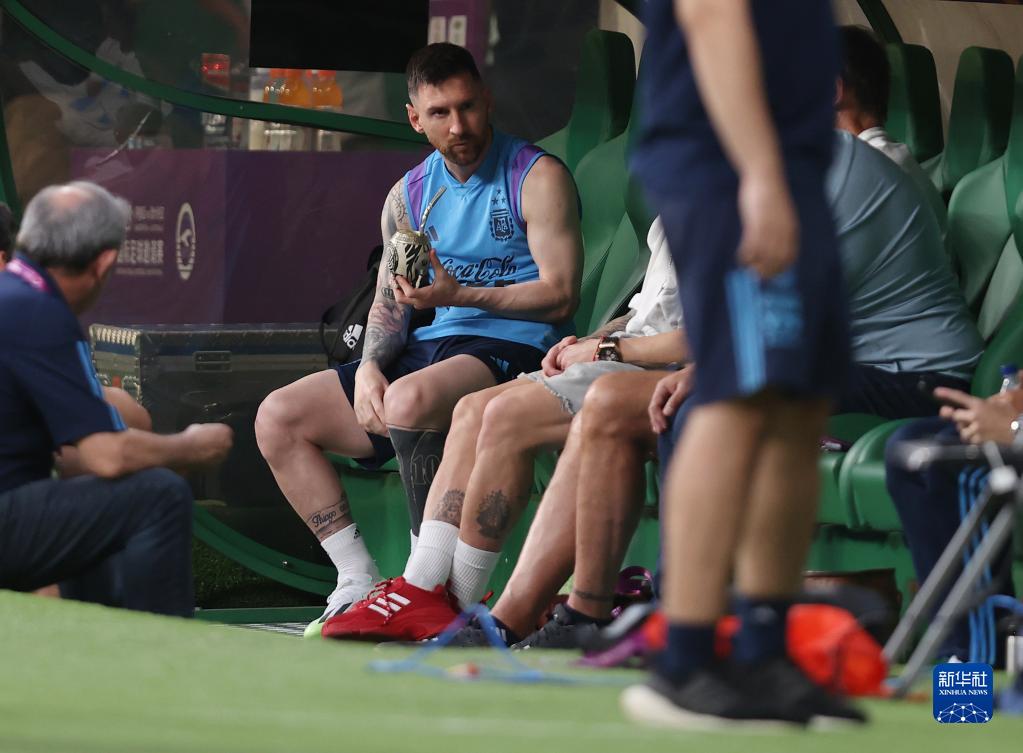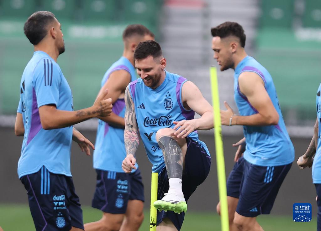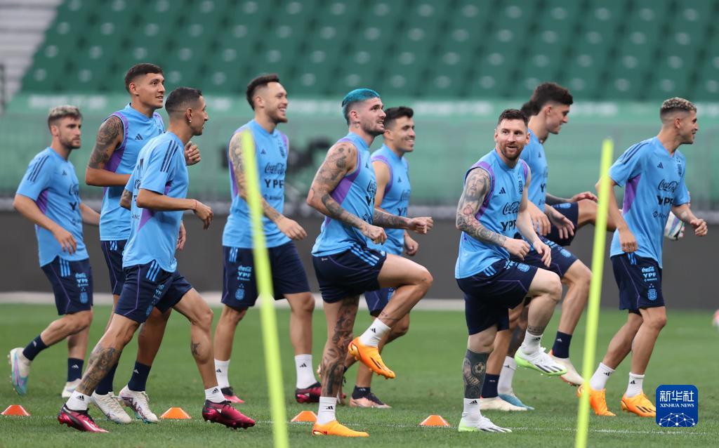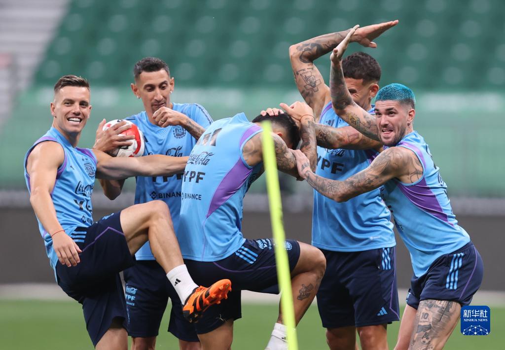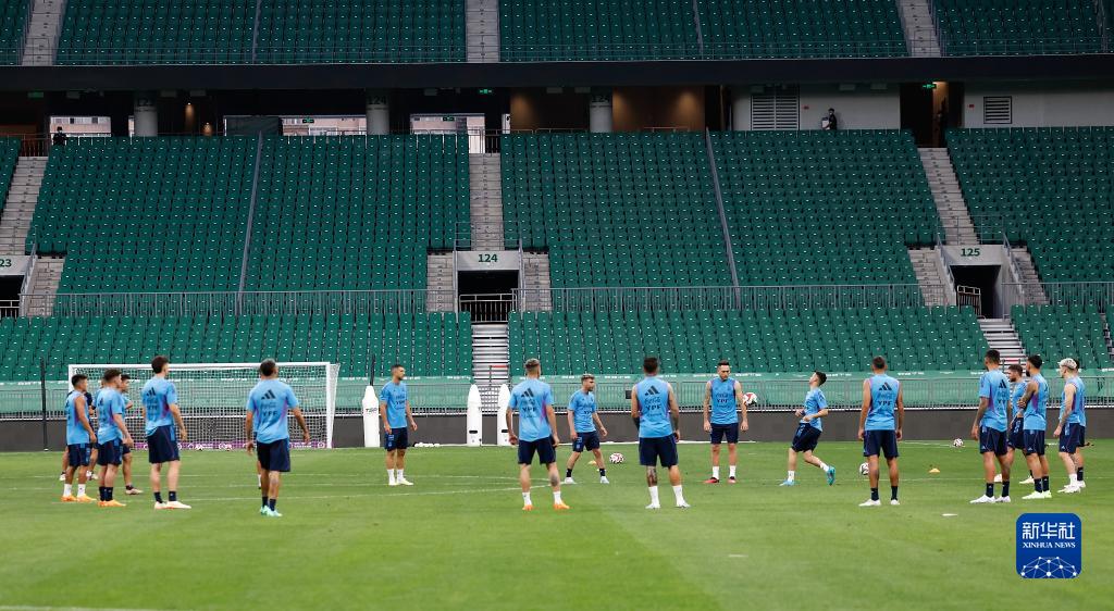 6月14日,阿根廷队球员在训练中。新华社记者 贾浩成 摄