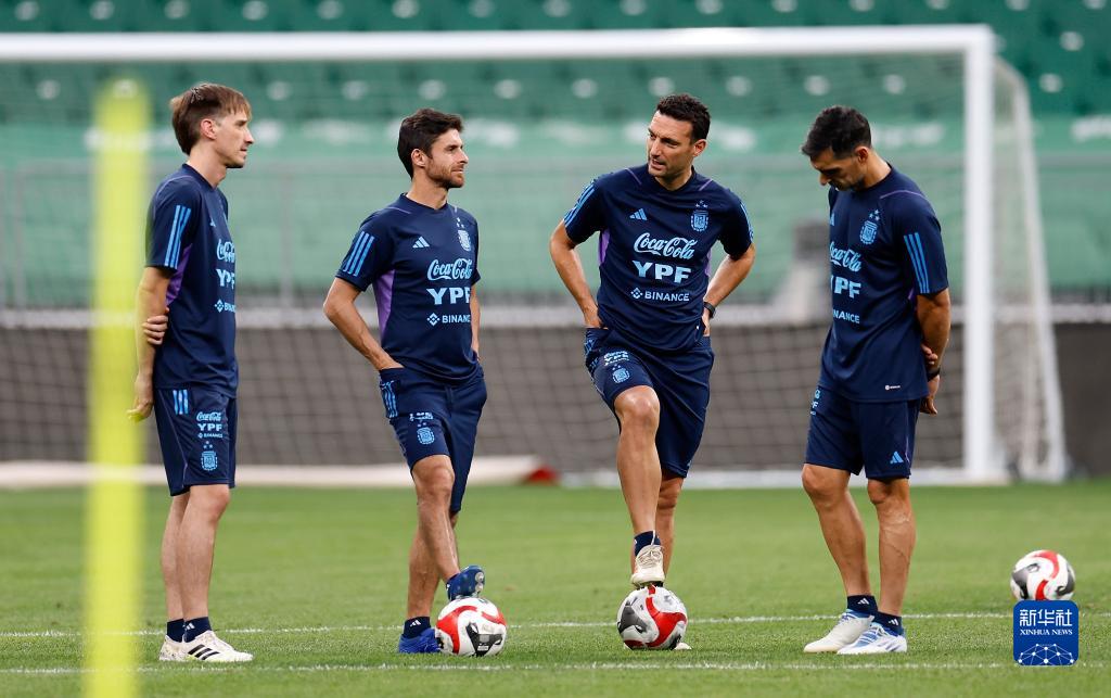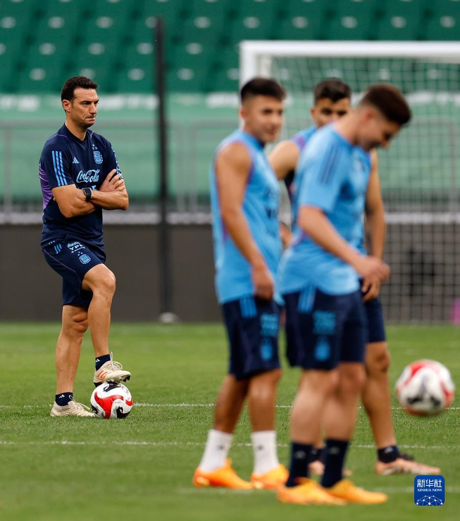 6月14日,阿根廷队主教练斯卡洛尼(右二)在训练中。新华社记者 王丽莉 摄