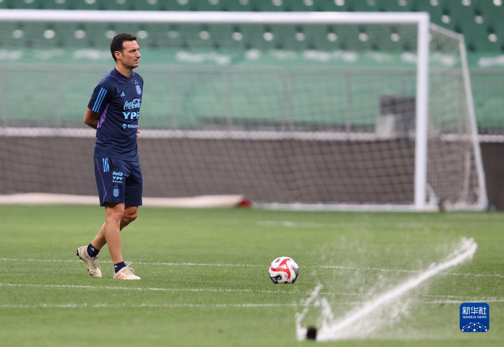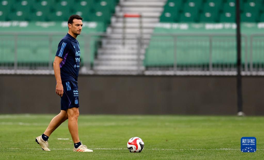 6月14日,阿根廷队主教练斯卡洛尼在训练中。新华社记者 贾浩成 摄