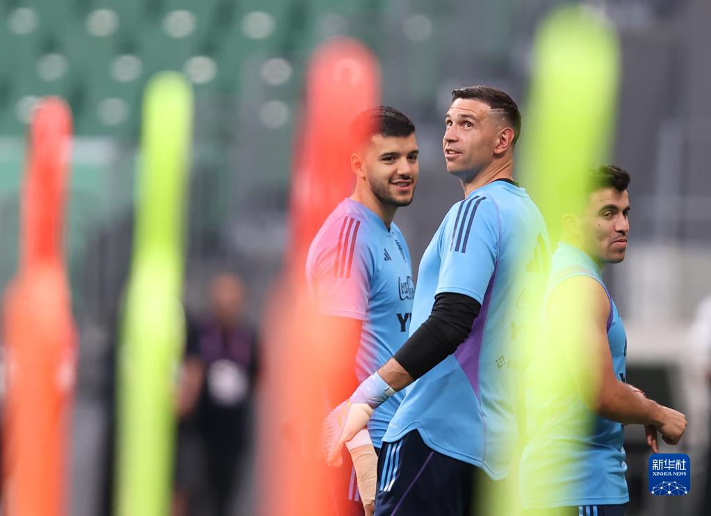 6月14日,阿根廷队守门员马丁内斯(中)在训练中。新华社记者 贾浩成 摄