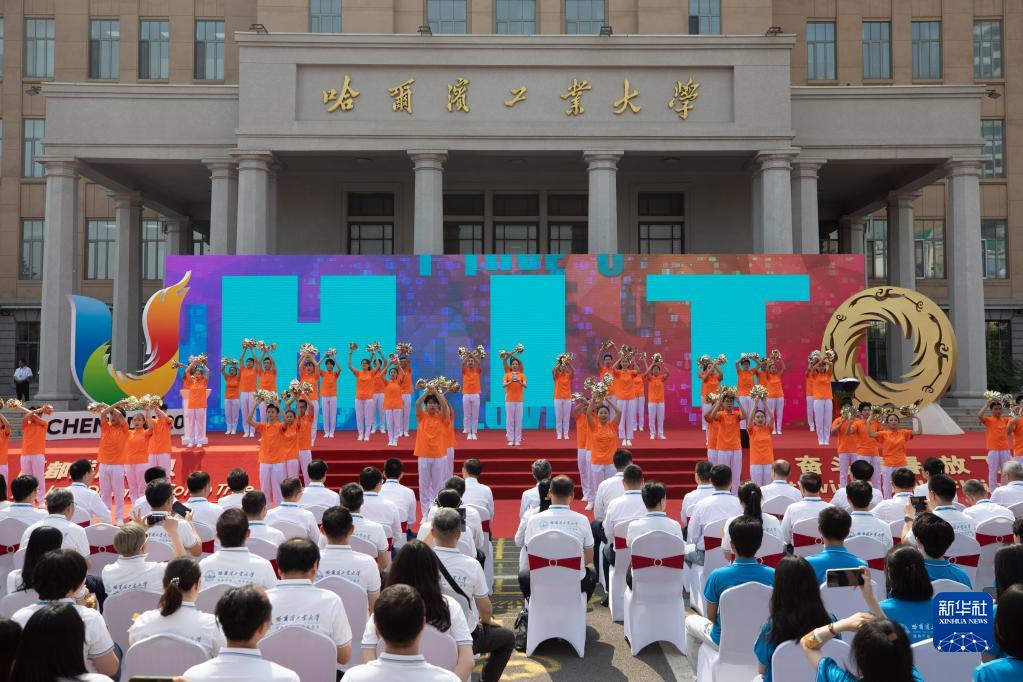 这是6月15日拍摄的火炬传递哈尔滨站仪式现场。新华社记者 张涛 摄