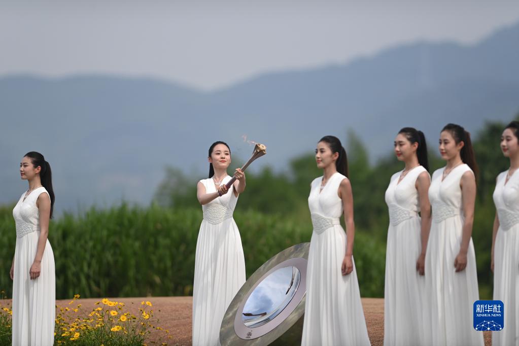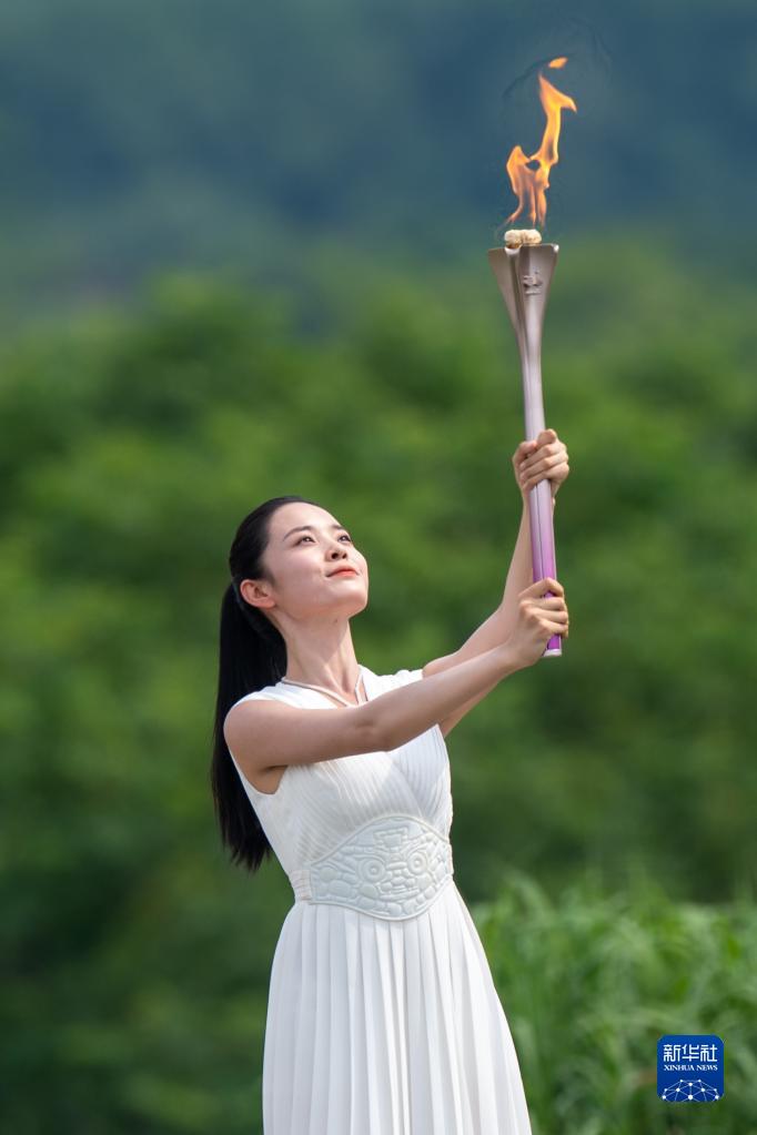 6月15日,采火使者点燃采火棒。新华社记者 黄宗治 摄