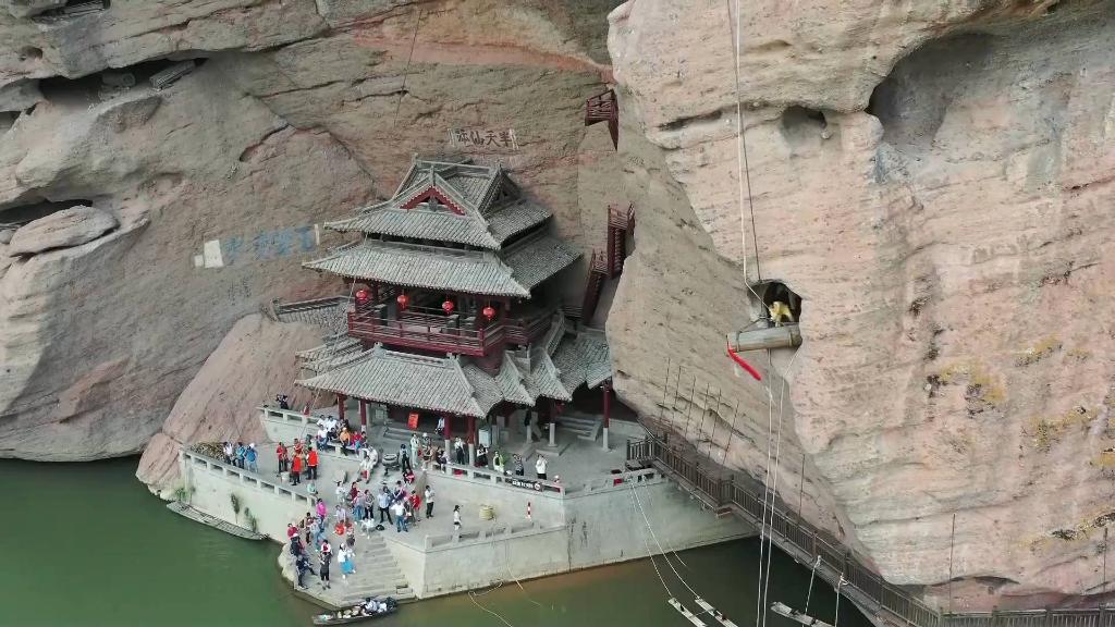 悬棺安放之谜至今未解,今天的人们在孜孜探索中结合其中一种推测开发了悬棺表演项目,当地的药农利用仿古木绞车、木滑轮、麻绳等工具,试图为南来北往的游客演示两千多年前古越族人吊装悬棺的过程。