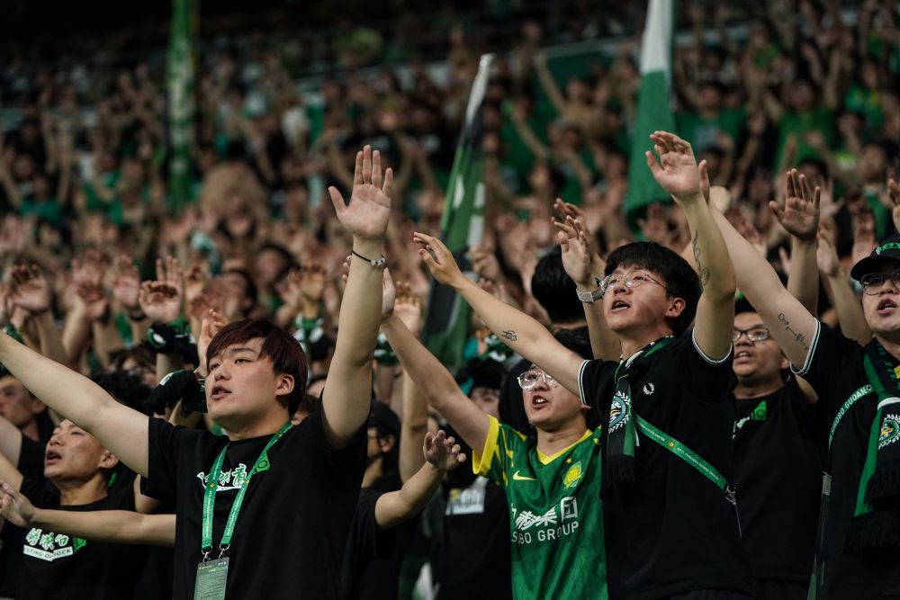 5月23日,北京国安队球迷为球队加油呐喊。新华社记者 彭子洋 摄