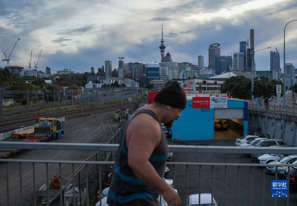 6月15日,一名男子在新西兰奥克兰市中心附近走过一座天桥。新华社发(赵纲摄)