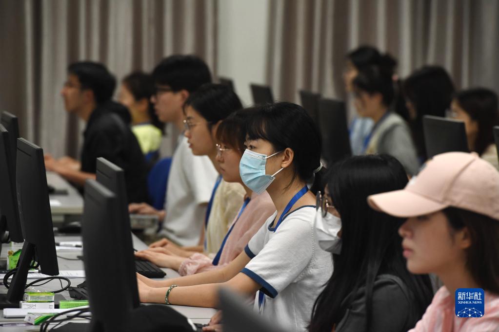 6月15日,阅卷教师在南京大学阅卷点评卷。