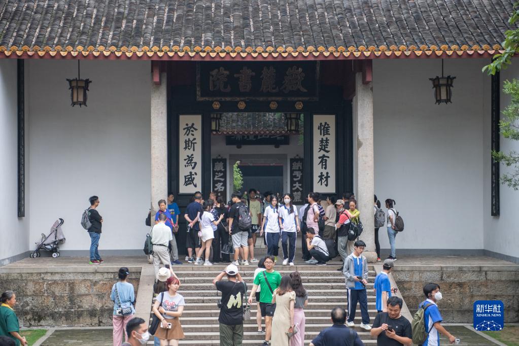 6月8日,游客在长沙岳麓书院游览。