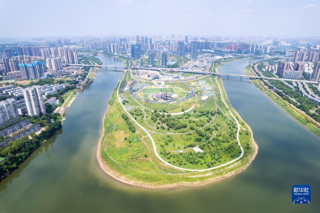 这是6月7日在长沙市开福区拍摄的马栏山鸭嘴湿地公园(无人机照片)。