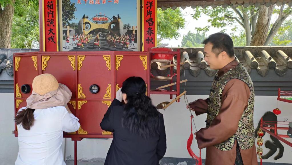 如今在吴桥,拉洋片不仅是老一辈人的回忆,也吸引着年轻人的目光。今年36岁的王峰是传承拉洋片的年轻一代。