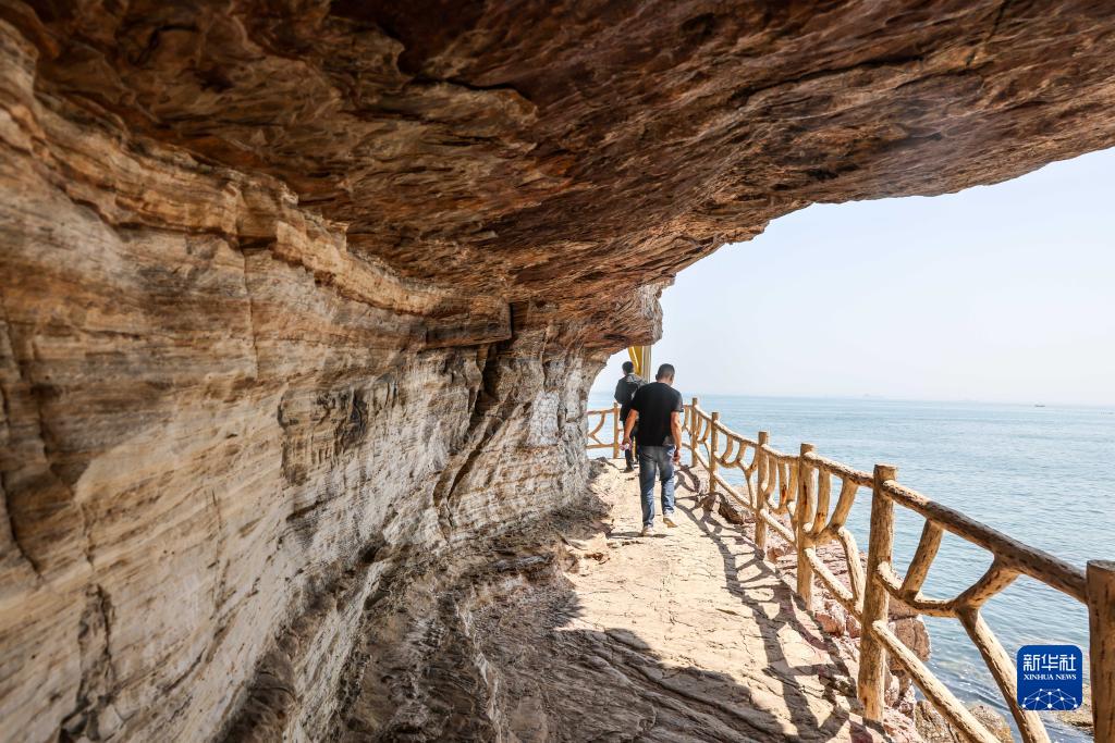 位于渤海湾山东长岛海洋生态文明综合试验区内的大黑山岛是一座火山岛,在岛东端的龙爪山山腰部的石英岩上有一条长约1.5公里的因亿万年风化和海蚀作用形成的天然“栈道”,随着海平面下降,“栈道”露出水面。据地质部门勘察,海蚀“栈道”包含了大量古生物、海洋运动信息,具有较高的地质学研究价值,每年吸引游客前来参观。