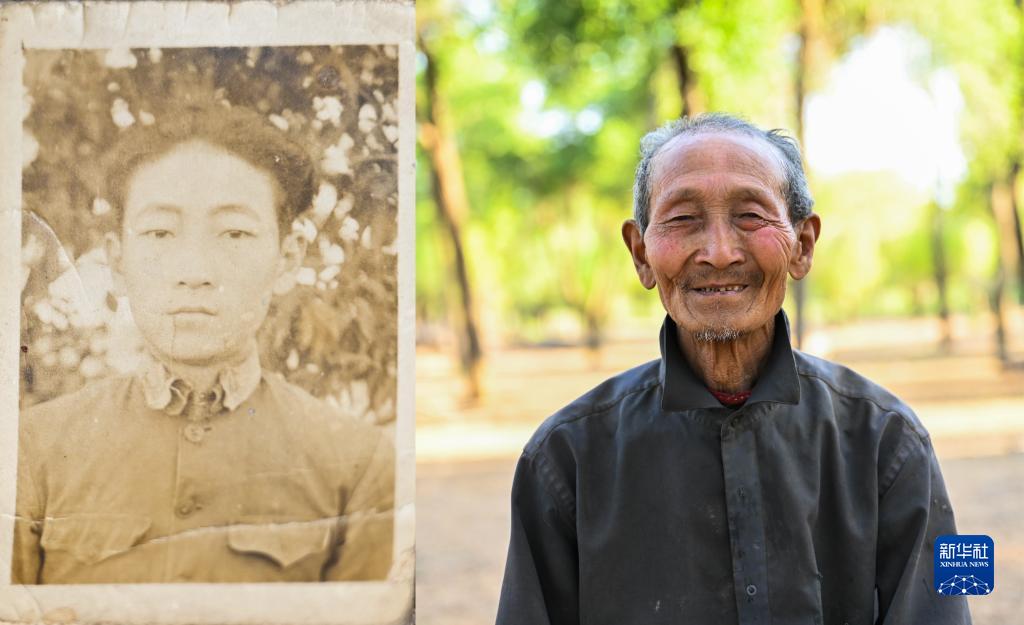 拼版照片,左图为曹扎娃年轻时的照片(6月14日翻拍);右图为曹扎娃现在的照片(6月14日摄)。