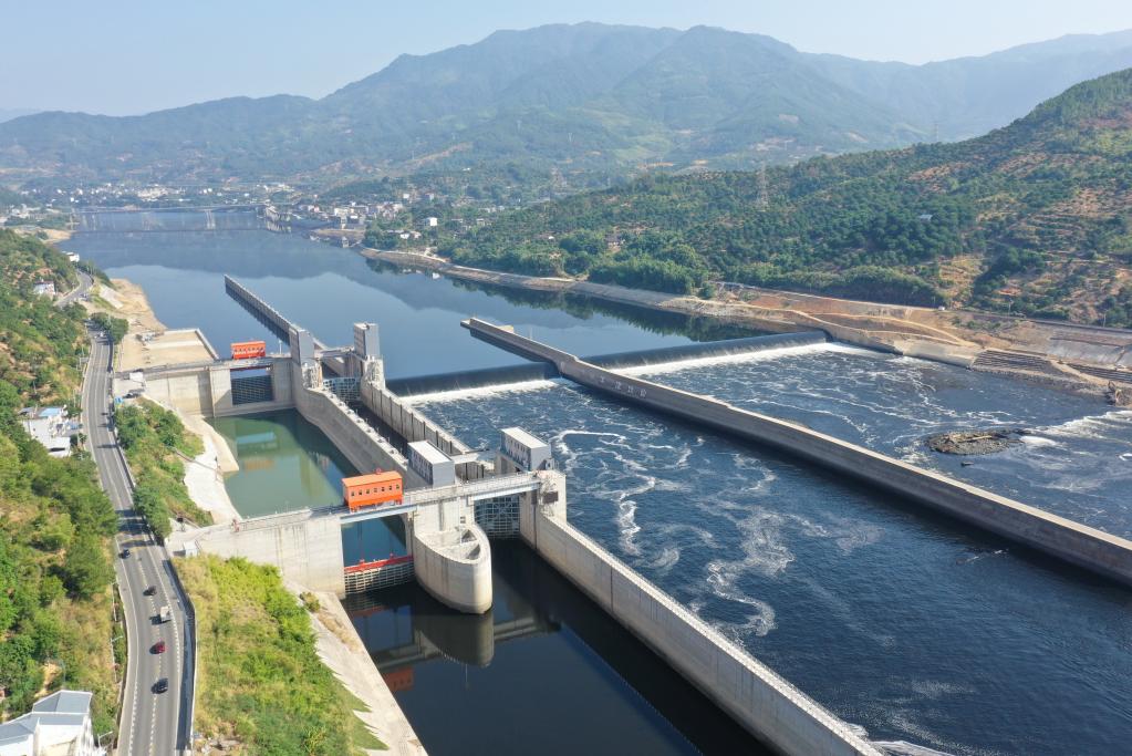 这是位于福建省闽清县境内的闽江水口航运枢纽(无人机照片)。新华社记者林善传 摄