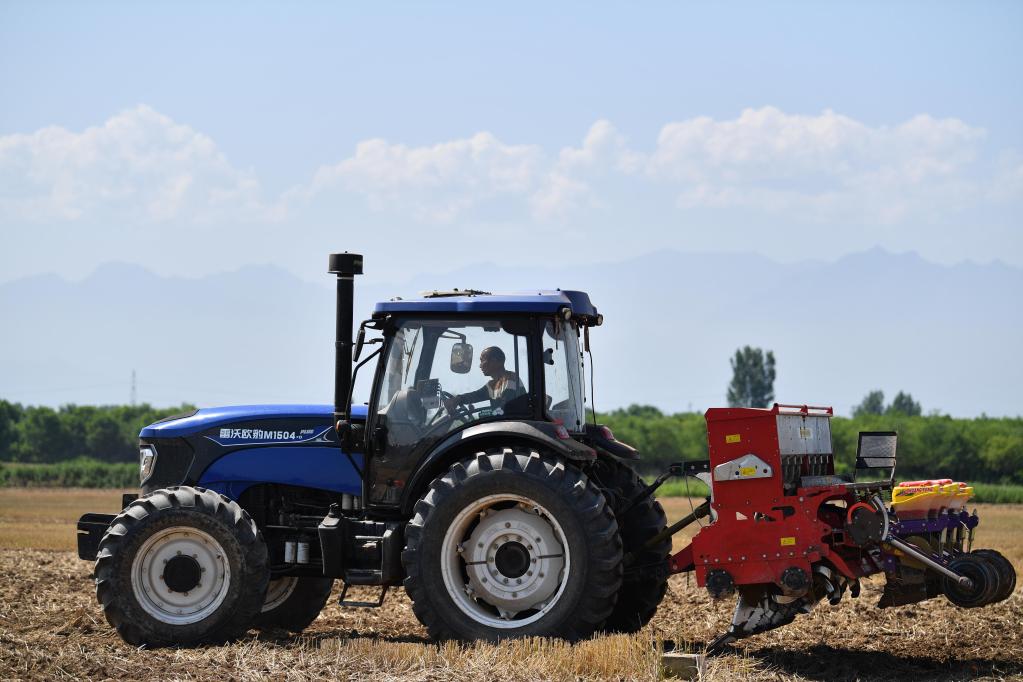 新华社西安6月16日电(记者孙正好、张博文)填种、加肥、开播……在位于关中平原的陕西省西安市鄠邑区赵王镇村,随着玉米深松精量播种机开足马力,残留的麦茬被连根翻起,一粒粒玉米种子被埋进土壤。