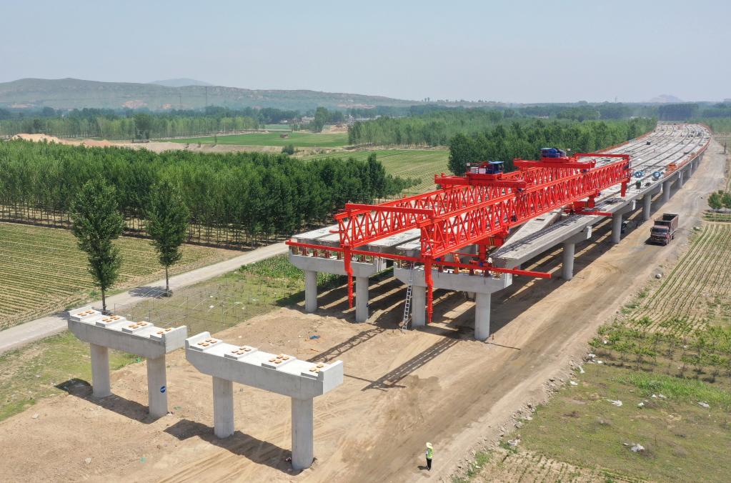 在秦皇岛市昌黎县境内的秦(秦皇岛)唐(唐山)高速公路三标段特大桥建设工地,记者看到工人们正在紧锣密鼓地进行预制梁吊装、浇筑桥墩等施工作业,以确保项目建设按照时间节点有序推进。